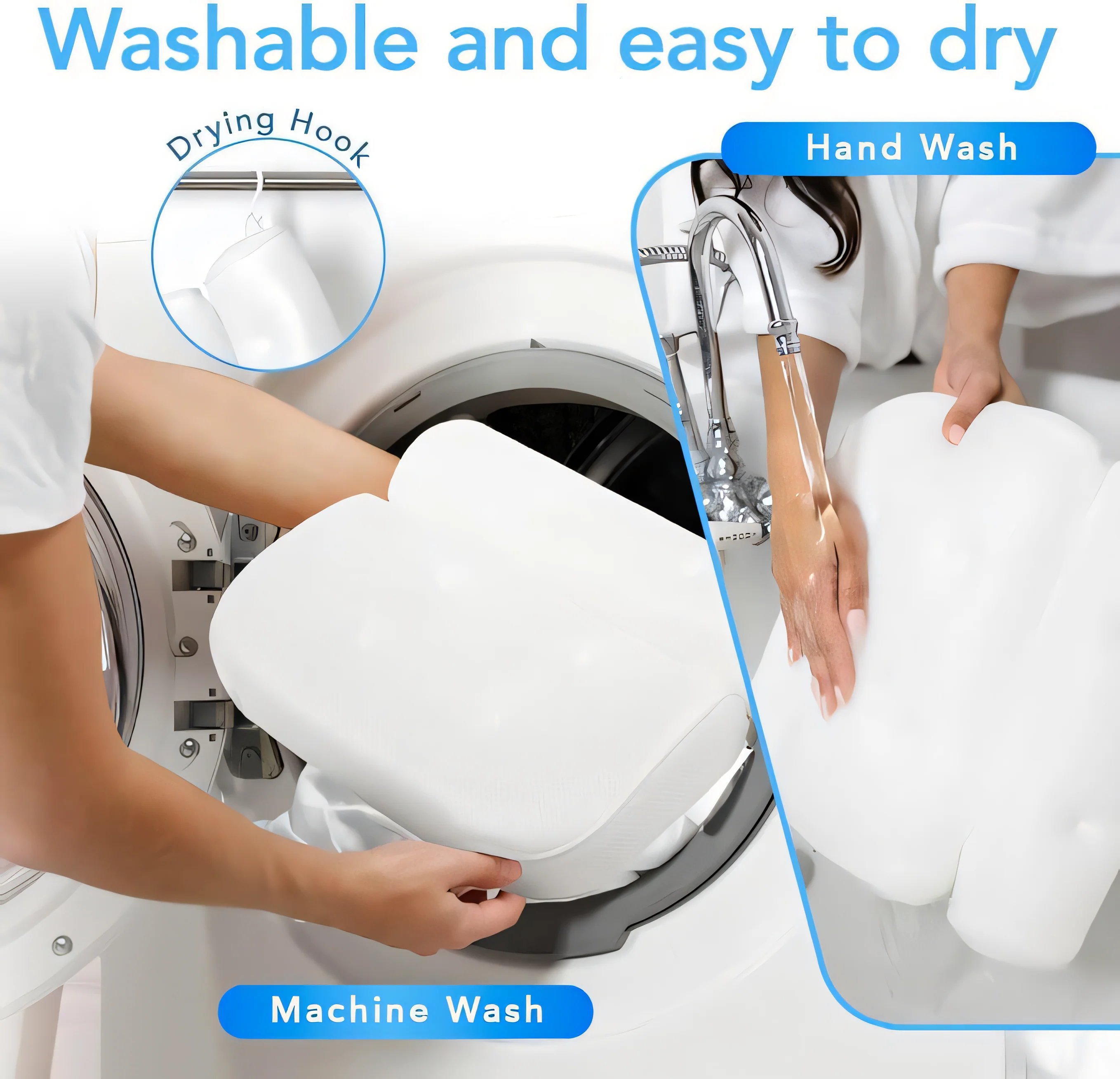【GÉPBEN MOSHATÓ ÉS BEÉPÍTETT HORG A GYORS SZÁRADÁSHOZ】- Könnyen tisztítható! Ez a párna hidegen, kímélő mosószerrel mosható. Kérjük, mossa ki a párnát magában (egyéb ruhadarabok nélkül). Mindig légmentesen szárítsuk, ne vasaljuk. Ez a puha, fehér párnázott fürdőpárna egy kampóval rendelkezik, amellyel a párnát törölközőtartóra vagy fürdőköpeny-akasztóra akaszthatja fürdőszobájában vagy zuhanyzójában a gyors és egyszerű levegőszárítás érdekében.